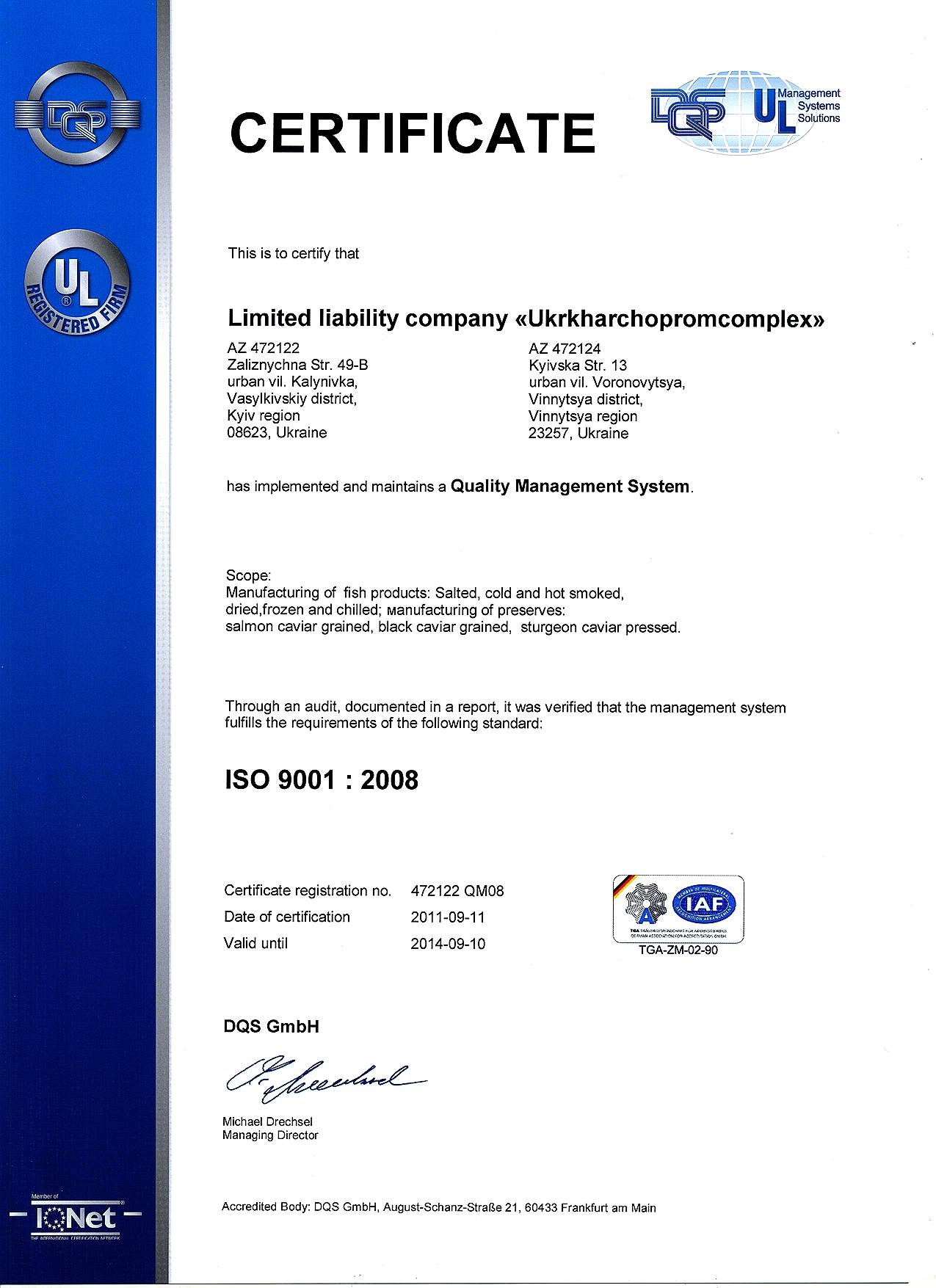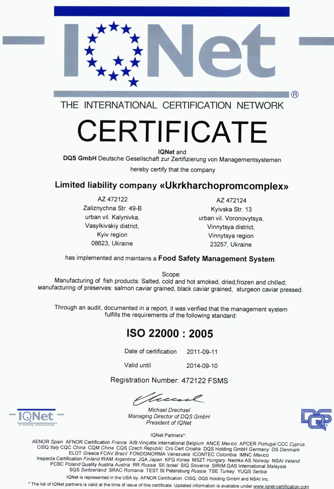 UKRKHARCHOPROMCOMPLEX LLC is certified by the following certification authorities and obtained the certificates confirming the compliance of production and products with international standards:
